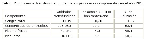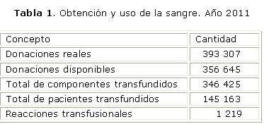 Breve análisis del comportamiento de la hemoterapia en Cuba en el año 2011